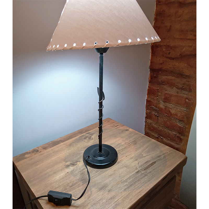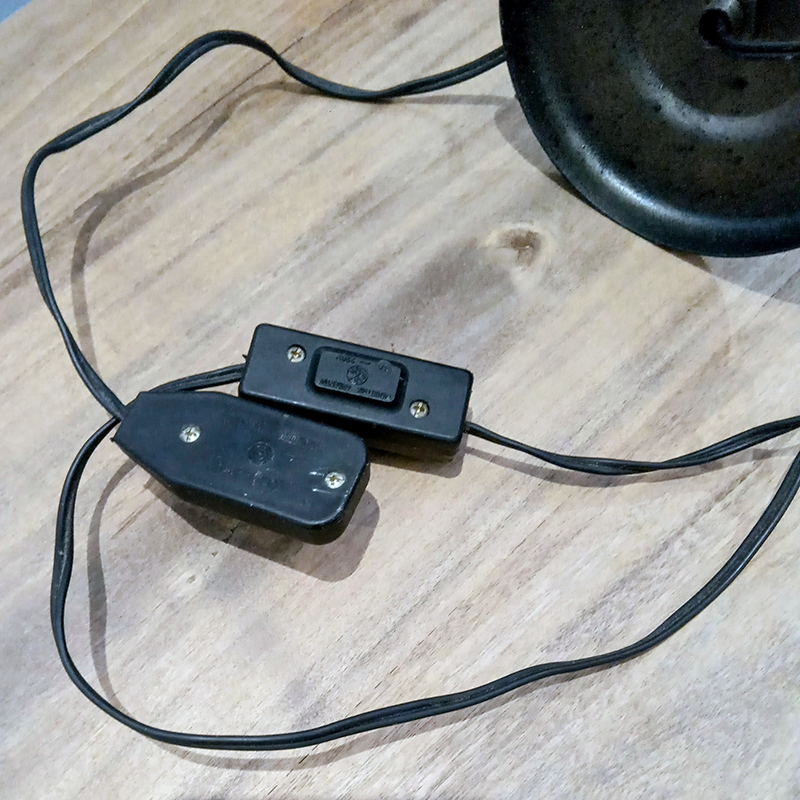 Esbelto velador metálico alimentado con un cablecito bifilar de aislación simple.