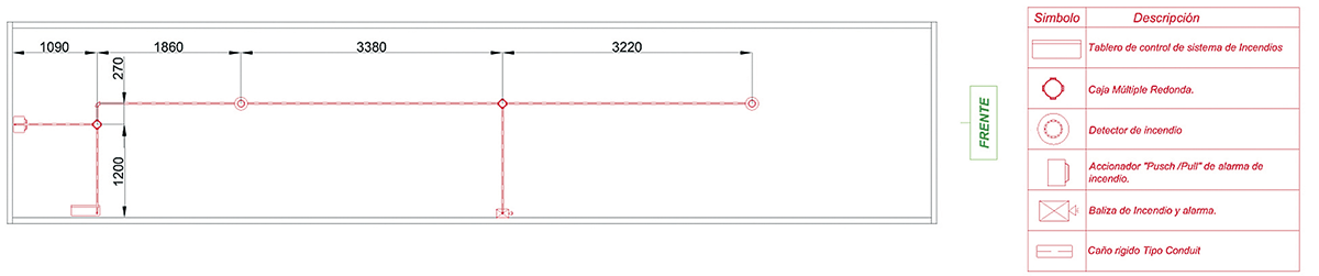 La instalación se completa con cajas y cañería similar a la instalación eléctrica para canalización del sistema de detección de incendio, termostato etc.