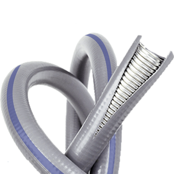 - Caño metálico negro, flexible, con fleje de acero zincado y recubierto con una funda de polietileno. Ideal en entornos con desplazamientos, vibraciones o curvas pronunciadas. Versiones disponibles con diámetros internos de 0.5 a 2”, todas certificadas según IRAM 62386. Conectores metálicos también a disposición (IP 54), rosca tipo BSC y tuerca incluida.
