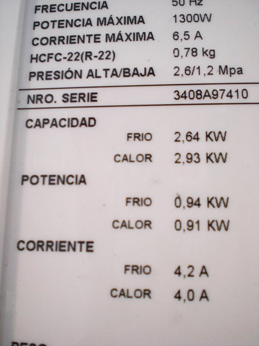 Figura 1. Placa de un acondicionador: rinde el triple de lo que consume