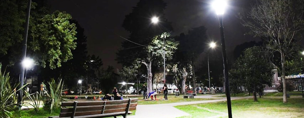 Las obra consistió en el recambio de luminarias y colocación de nuevos postes y farolas, todo con tecnología led. Ahora, visten el lugar 39 farolas y diez columnas nuevas para que los vecinos puedan disfrutar del parque en horas con menor luz solar.