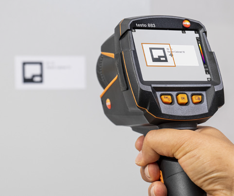 La cámara termográfica testo 883 ofrece una solución eficaz para cada uno de los requisitos descritos. La función SiteRecognition simplifica la identificación de los objetos y lugares medidos y la asignación posterior de todas las termografías que se hacen de forma repetitiva. La estudiada ergonomía y el enfoque manual aseguran la toma de termografías totalmente nítidas incluso en primeros planos. El amplio rango de temperatura permite adaptar la cámara a una gran variedad de situaciones y objetos de medición, y su funcionamiento intuitivo permite su uso por una gran parte del personal incluso sin una formación específica.