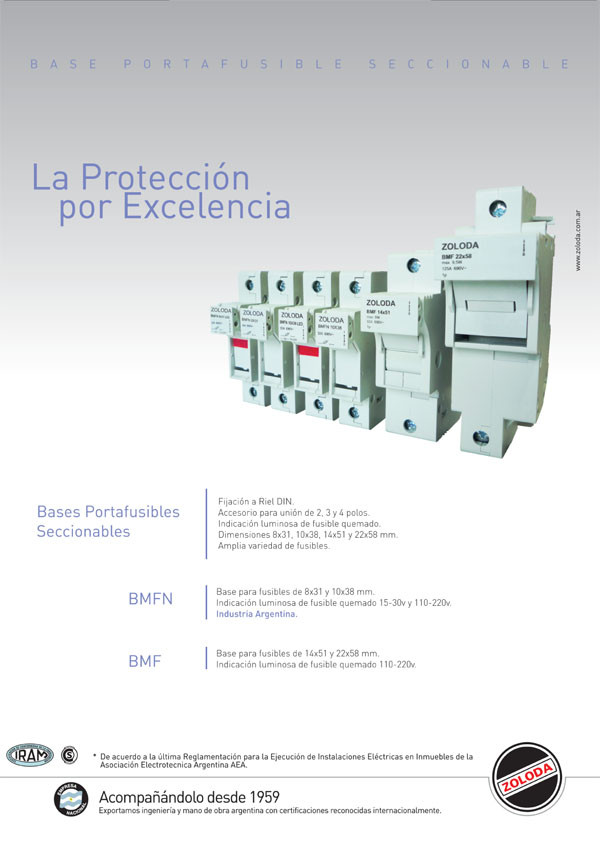 ZOLODA es líder en conéctica y electroductos, con una oferta completa de bornes de conexión, canalizaciones plásticas y caños flexibles de acero revestido, todos ellos fabricados según las normas IEC y con sello de seguridad eléctrica de la Secretaría de Defensa del Consumidor.