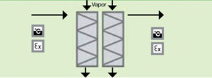 Medida de la temperatura después del intercambiador de calor, para regular la tubería de vapor con el transmisor programable de dos hilos 5331D y la barrera Ex 5104B.