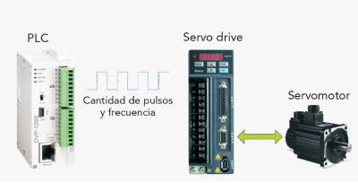 Una de las inquietudes más frecuentes que surge al momento de hablar de servomotores es conocer la manera de controlarlos y la forma de indicarles la posición que se desea alcanzar, así como la velocidad. Para ello, existen distintos métodos de control. El más común y más utilizado (por su sencillez) es el control por pulso y frecuencia. ¿Qué implica este procedimiento? Por lo general, hablamos de milímetros, pulgadas, metros, etcétera, pero el servo drive no entiende qué significan estas magnitudes, ya que solo interpreta los pulsos que recibe y con qué velocidad los recibe (frecuencia). Supongamos que nuestro sistema mecánico avanza cien milímetros —100 mm— (por cada vuelta del motor) y el motor da una vuelta cada mil pulsos recibidos, o sea, que si le entregamos mil pulsos al servo drive, desde un controlador superior como ser un controlador lógico programable, el motor hará que la carga avance cien milímetros. Ahora bien, si precisamos que avance doscientos milímetros (200 mm), tendríamos que enviarle dos mil pulsos al servo drive. Y si requerimos que avance trescientos milímetros (300 mm), esta vez deberíamos entregarle tres mil. De este modo, estaremos controlando la posición del servomotor de una manera muy sencilla. Por otro lado, solo nos faltaría controlar la velocidad del servomotor. Esta tarea es simple, porque únicamente necesitaríamos modificar la frecuencia con la que se entregan los pulsos. Si la frecuencia con la que se generan los pulsos es mayor, la carga logrará la posición deseada rápidamente. A diferencia, si la frecuencia es menor, la carga tardará más tiempo en alcanzar la posición. Para este tipo de control, se desarrolla software que implica herramientas diferentes, para poder controlar servomotores de forma bastante sencilla. De esta manera, uno puede controlar un servomotor con tan solo una línea de programación, consiguiendo toda la precisión y velocidad que el servo puede brindar.