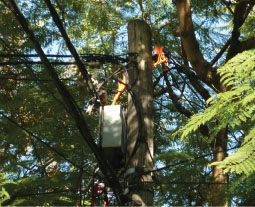 Figura 1. Dos sistemas a 220 V CC, cada uno aislado el uno del otro 220 V En los inicios, también en nuestro medio, las líneas eran de corriente continua (tensión única), no se sabe si porque Edison ignoraba las ventajas de la corriente alterna señaladas, entre otros, por su empleado Nikola Tesla (elección de la tensión conveniente, por ejemplo) o porque su socio J. P. Morgan controlaba, entre otros, el mercado del cobre, y para electrificar Nueva York en corriente continua hubo que enterrar muchísimo. Lo cierto es que en la ciudad de Buenos Aires, siempre marcando bien o mal el ritmo de la Argentina, también arrancamos con corriente continua, para luego ir pasando a corriente alterna primero con suma rapidez hasta que la Compañía Alemana Transatlántica de Electricidad –CATE– a causa de la derrota alemana en la Primera Guerra transfirió sus negocios, pero no su dinámica, a la Compañía Hispano Americana –CHADE– y esta a su vez a la Compañía Argentina de Electricidad –CADE– coexistente con la Ítalo. En los albores, época de Otto Krause y Jorge Newbery, este último, a cargo del Departamento de Alumbrado de la municipalidad, quien tuvo que vérselas exitosamente con el avance de las tecnologías. Figura 2. Ambos dínamos de 220 V cada uno se conectaban en serie, total 440V; el punto medio de la serie se convertía en el neutro y se lo conectaba a una tierra de servicio. Las cargas domiciliarias A y B recibían 220 V cada una mientras que las cargas industriales C recibían 440 V. Cuando las cargas A y B eran similares, la corriente en el neutro era nula: igualito que en CA trifásica, conexión estrella con cargas equilibradas La conversión de corriente continua a corriente alterna, sumamente costosa para las compañías que debían hacerse cargo del reemplazo de los motores, duró hasta bien entrada la década de 1950 (se vendían voluminosos convertidores a válvulas de corriente continua a corriente alterna que servían apenas para mover un tocadiscos sincrónico de 78 rpm), arrancó con sistemas trifásicos en conexión estrella de 3 x 220 V (la Ítalo, para diferenciarse, decía 3 x 225 V... Era lo mismo) penosamente transformados en 3 x 380/220 V mediante el agregado de un neutro desnudo de cobre conectado rígidamente a tierra, y este a las cajas de medidores y de fusibles que, porque eran todas metálicas, daban como resultado no pocos accidentes cuando se cortaba un neutro ya fuese por un incidente mecánico o redondamente porque se lo habían robado. Foto 1. Línea aérea abierta coplanar de baja tension | Foto 2. Preensamblado en llamas Las antiguas líneas aéreas abiertas de baja tensión en cobre o aluminio (ver foto 1) sostenidas por postes de palmera fueron reemplazadas en su totalidad (incluyendo la colocación de postes de eucalipto creosotado u hormigón en lugar de las palmeras todas podridas) por cuenta y riesgo de la distribuidora del conurbano todavía estatal en los albores de las privatizaciones, por las líneas denominadas “preensambladas en aluminio”, cuya característica principal es su formación agrupada que ocupa menos espacio y tiene mejor rendimiento eléctrico incluso en cuanto a aislamiento (polietileno reticulado, desgraciadamente propagante de la llama, ver foto2), dejándole servida la infraestructura a las compañías de cable y luego Internet para que aprovechasen los postes, libres de interferencias y riesgo de contactos toda vez que las características de los nuevos tendidos de energía así lo garantizaban, y muy especialmente porque las instalaciones de cable fueron ejecutadas por debajo de aquellas a pesar de incumplir frecuentemente con los gálibos reglamentarios para el transporte de pasajeros y mercaderías, que las líneas de energía sí cumplen. |