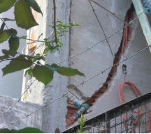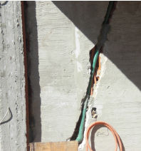Caños corrugados propagantes de la llama (color naranja), de diámetro insuficiente y curvados de modo que imposibilitan el reemplazo de los conductores. Amurados oblicuos o sinuosos que impiden predecir sus recorridos y su reutilización. Tramos enteros con subida y bajada, mal llamados “sifón”, que se inundan con agua de condensación (o de lluvia cuando están expuestos a la intemperie y aun con aguas servidas cuando están bajo tierra), solo evaporada por recalentamiento de conductores inapropiados.