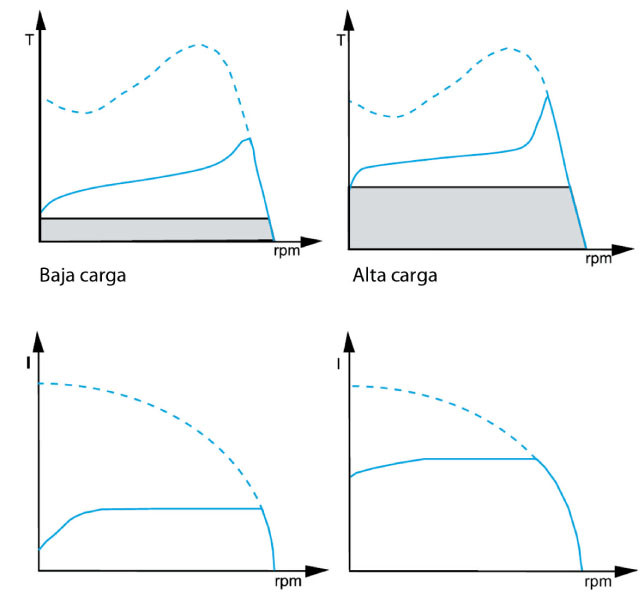 Las cargas con mucha inercia generalmente requieren un mayor tiempo de arranque y absorben más corriente de la red.