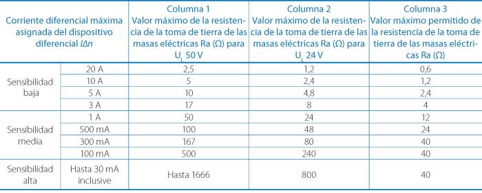 El valor de la resistencia de puesta a tierra de protección surge de la tabla 2.