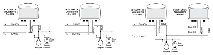 Los detectores de movimientoEl detector (o sensor) de movimiento (o presencia) es un dispositivo que poco a poco fue ganando su lugar en el mercado. Fue quizá por seguridad, porque alerta acerca de la presencia de algo que se mueve (¿una persona? ¿un animal? ¿el viento?) en un espacio supuestamente deshabitado; por comodidad, porque nos percibe a nosotros mismos y activa mecanismos automáticamente ahorrándonos alguna tarea como, por ejemplo, prender una luz o abrir una puerta. Sea el motivo que sea, sí es evidente que estamos frente a un equipo cada vez más cotidiano y que los avances de la domótica auguran para él una larga estadía entre nosotros. Forma de conexiónEste detector de movimientoEste dispositivo de RBC Sitel es apropiado para ser utilizado en el control de la iluminación de pasillos, escaleras, garages, baños, accesos, etc.; también, en circuitos de advertencias o alarmas, y en todo aquel donde su cierre y apertura automáticos por detección de movimiento lo requiera; como así también para controlar la alimentación de cualquier artefacto que se adapte a las características técnicas de esta unidad. Asimismo, puede reemplazar los pulsadores comunes en un temporizador de escalera ya existente. Área de detecciónInstalaciónRespecto de la instalación, se coloca sobre una pared (eventualmente en el techo), siempre en interiores y protegido del agua, ubicado de forma tal que el desplazamiento de las personas que se pretenda detectar sea transversal a los rayos del área seleccionada. Se sujeta con tornillos con tarugo y la distancia entre los orificios coincide con los de una caja mignón, por lo cual se sugiere montar sobre este tipo de caja para hacer el conexionado en su interior. Potencias máximas según modelo y tipo de cargaCaracterísticas técnicas