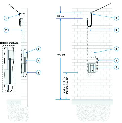 En los esquemas se indica la colocación de medidores en muros y pilares, con acometidas aéreas y subterráneas, tomados del sitio web de Edenor, similares a las exigencias de Edesur.