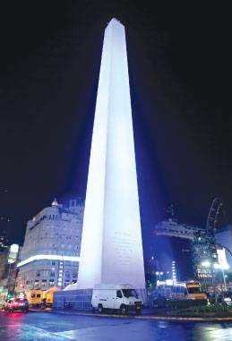 Miles de personas se congregan en su entorno para festejar o manifestarse. El Obelisco es el mayor símbolo de la ciudad de Buenos Aires y fue erigido el 1936 para conmemorar los cuatrocientos años de su primera fundación. El monumento está ubicado estratégicamente en la intersección de dos de sus avenidas más importantes: 9 de Julio, una de las más anchas del mundo, y Corrientes, con intensa vida cultural y nocturna.