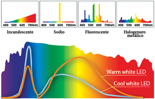 La luz es la radiación visible para el ojo humano en el rango de 380-780 nanómetros. Los estímulos ópticos se registran en el ojo humano a través de tres conos diferentes que responden sensiblemente a la radiación roja, verde o azul, aunque no percibimos los colores con el mismo nivel de brillantez.