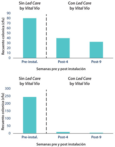 Es muy probable que su método actual de limpieza permita intervalos en los que se produzca un gran crecimiento del número de bacterias, llamado “limpieza intermitente”. Instalando este sistema, se podrá tener un control continuo del crecimiento de las bacterias, dentro de un decrecimiento continuo, eliminando el riesgo potencial en estos intervalos entre limpiezas.